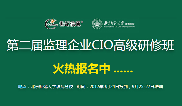 珠海市世纪信通公司与北京师范大学珠海分校联合发布了《监理企业CIO培训大纲》,并和各方专家研发课程,现联合举办《监理企业CIO高级研修班》,同时搭建一个企业家、院校专家教授、信息化专家的交流、分享平台。