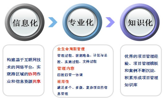 随着我国建筑项目投资力度的加大,以及投资体制改革、建设项目管理体制改革的不段深入,逐步形成了“投资多元化、融资渠道市场化”,“小业主、大项目、多项目”的格局。与此同时,由于建筑项目系统复杂、投资大、工期紧、施工条件差难度大等特点,造成协调、沟通工作量大,影响面广,需要多单位共同参与协作,多专业协同配合。传统的管理理念和方法已经很难满足日益发展的项目管理需求,迫切需要企业运用先进的项目管理工具和手段,以提升企业对项目的投资、进度、合同、质量控制能力,促进企业项目管理科学化、规范化、体系化,以确保项目的成功。