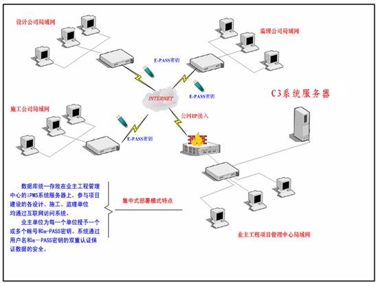 C3系统基于B/S(浏览器/服务器)结构,在局域网、互联网均可使用,用户(项目干系人)只需通过IE浏览器就可登录系统,系统操作、维护方便。