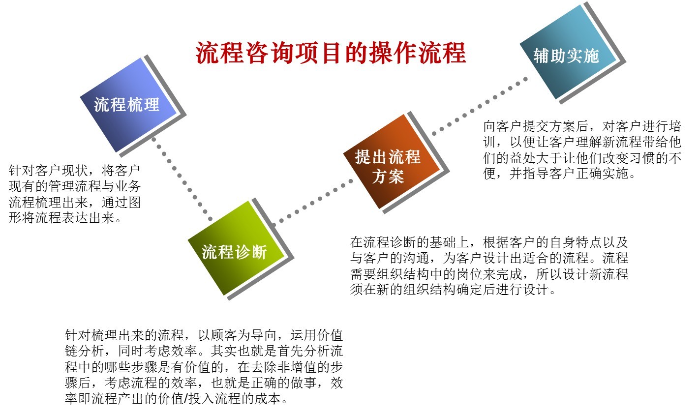 管理咨询就是根据企业的管理现状,在调查分析的基础上对企业管理做出中肯的评价,并针对存在的不足,提出可行的改进方案,指导实施这些方案的智力服务过程,它既可为企业提供切合实际的专业管理知识和技能,又可为企业经营决策提供所需的各种信息和建议。